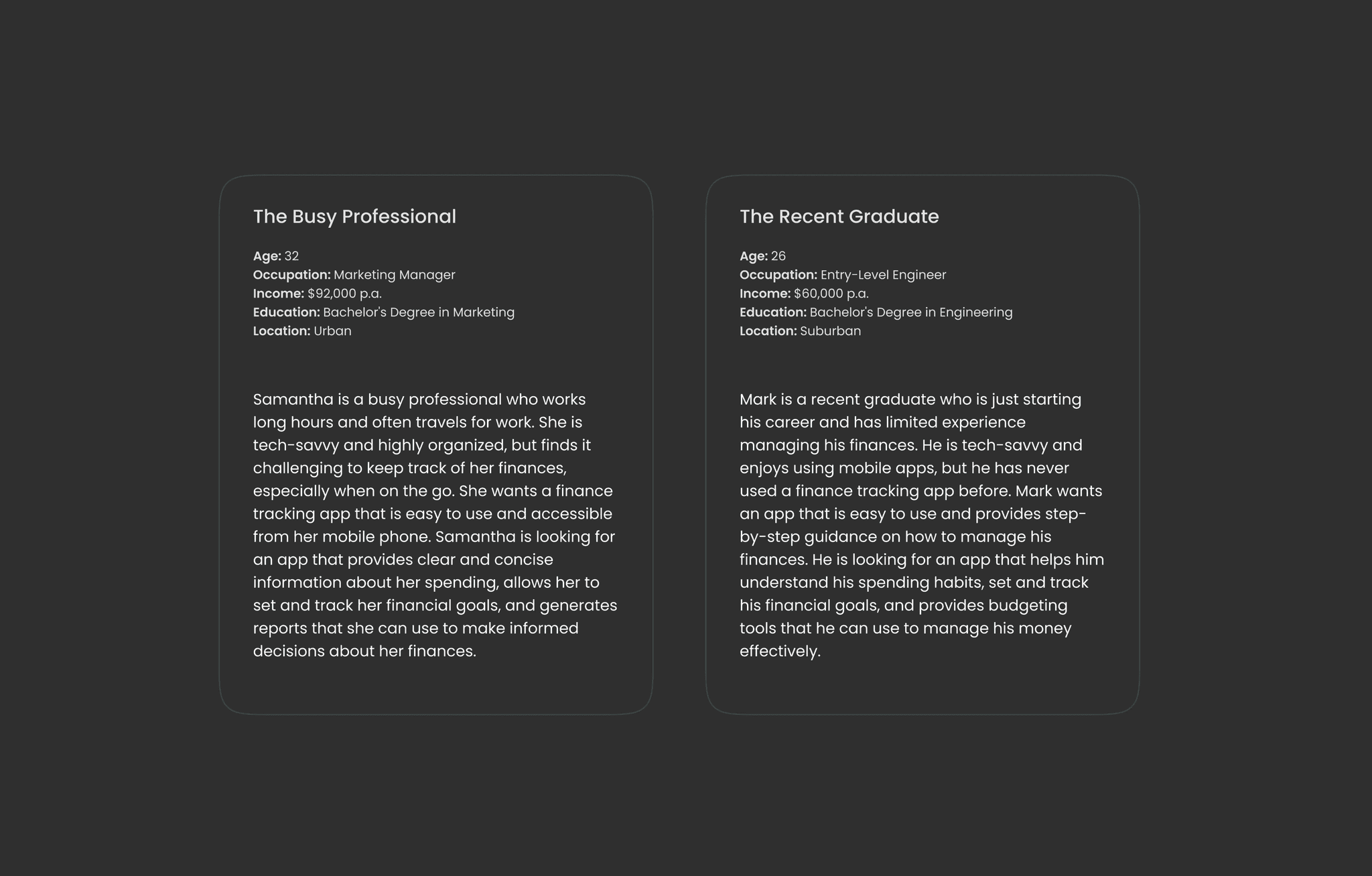 I created two distinct personas representing the primary user groups