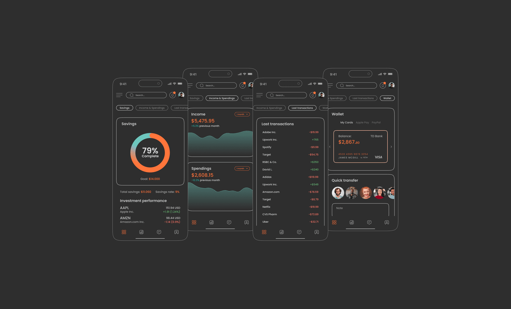 Developed comprehensive yet digestible financial overview screens and incorporated intuitive data visualizations and progress indicators
