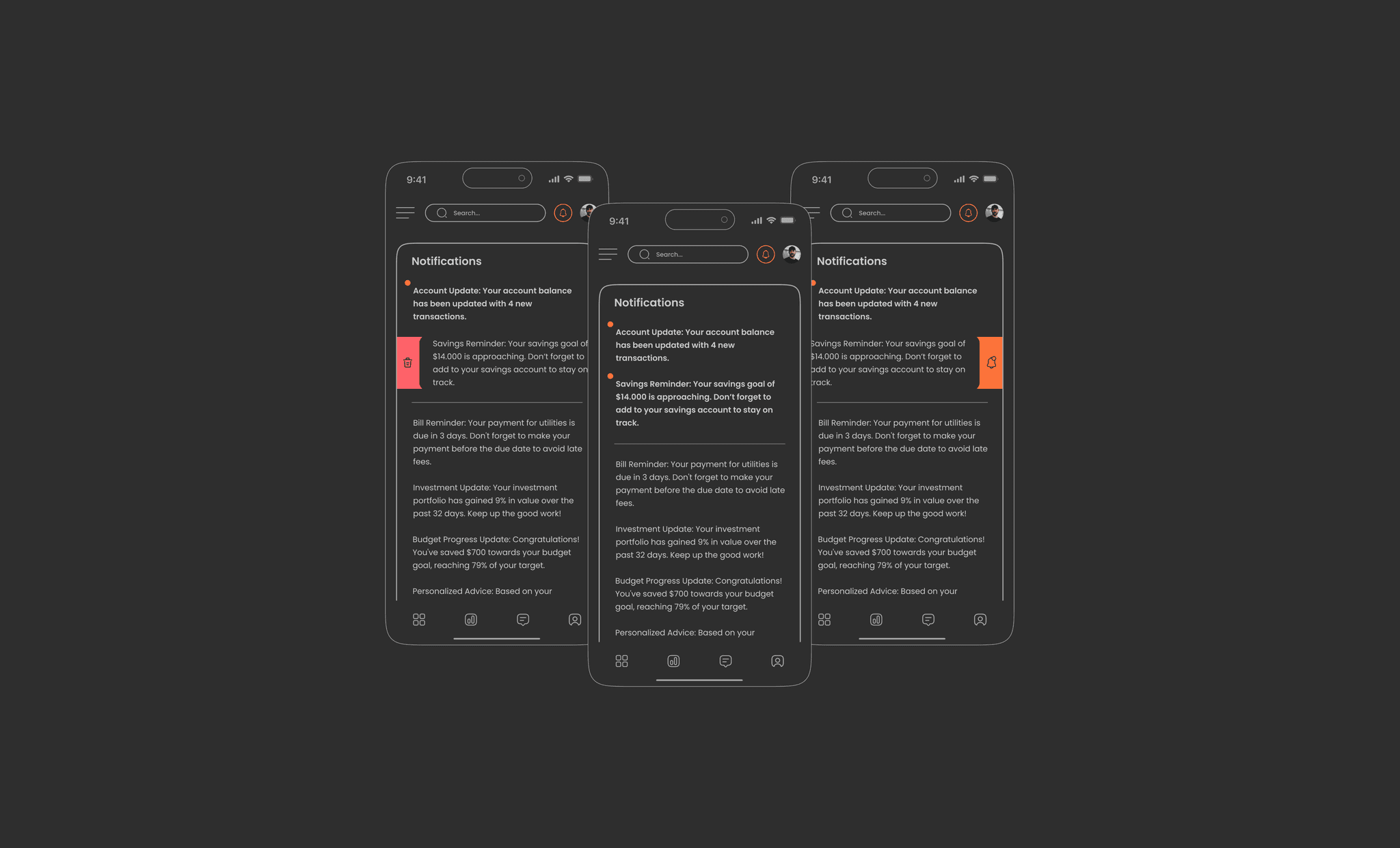 Created an accessible notification system available from all screens and designed alerts for bills, deadlines, and important financial updates